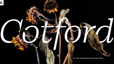 New from the Monotype Studio, Cotford is a contemporary serif from Creative Type Director, Tom Foley. Cotford is available as a variable font and as 16 static weights, including Display and Text styles. Cotford is available to all Montoype Fonts customers and can also be purchased at MyFonts.