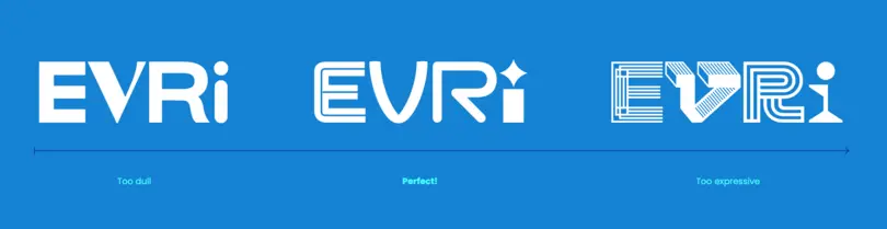 As type designers, drawing letters is what we do, it feeds our souls; and so being able to receive the gift of creative freedom from Superunion and the Evri brand team fostered a bountiful collaboration. The Monotype Studio set out exploring and iterating across all four letters of ‘E’ ‘V’ ‘R’ ‘I’ which inevitably led to all kinds of unexpected shapes. Iterating at whim almost became its own curse that naturally opened a lot of brand design questions around legibility, iconography, symbolism, and the possible danger of replicating another’s brand logo into Evri’s logotype. We established the approach of being curious and creating a set of unique letter shapes, whilst remaining mindful of the overall variety amongst type styles and balancing each character’s degree of expression.