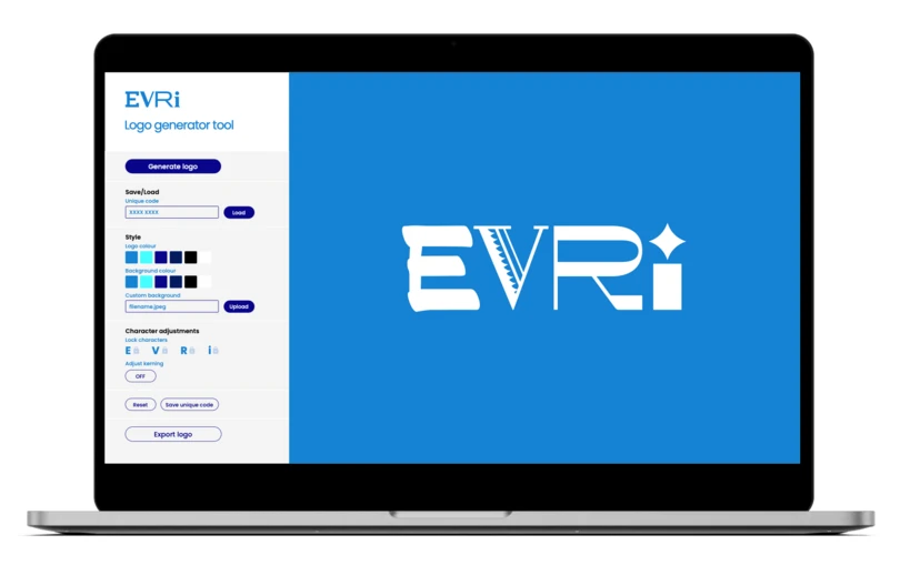 The bespoke Evri logotype generator tool made by Superunion allows Evri to create thousands of distinct logo design iterations with ease. The aim of the tool is to generate a variety of logo designs that can be used across all touchpoints and marketing materials. The intelligence and functionality within the tool allow the user to lock and change individual letters, create unique logo codes for favorite combinations, import custom background artwork and export for logos for final artwork. The typeface and tool create a space to access up to 194,481 possible unique logo combinations for use on delivery trucks, delivery slips, uniforms, and the brand website. This is possibly one of the most iterative logo systems to date.