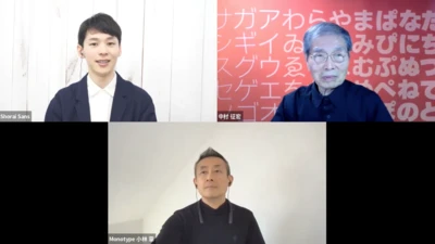 Monotype の小林と土井が中村征宏氏をゲストスピーカーに迎え、Shorai Sans 制作メンバーでトークセッションを行いました。中村氏は、1970年代から本格的に書体デザインを始め、ナールやゴナなどの有名和文書体をデザイン。半世紀にわたり、書体を作り続けている第一人者です。