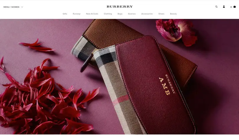 Das Burberry-Logo ist eine exklusive erweiterte Version von Bodoni, einer modernen Serifenschrift, die hohe Qualität und Luxus vermittelt. Proxima Nova ist der primäre Font für Überschriften, Bildtextsatz und Fließtext in Groß- und Kleinbuchstaben. Viele dieser Schriften (Navigation und Text) sind klein und schwer zu lesen. Die sekundäre Schriftart (Times) ist eine weitere einfallslose Wahl, die kostenlos verwendet werden kann.