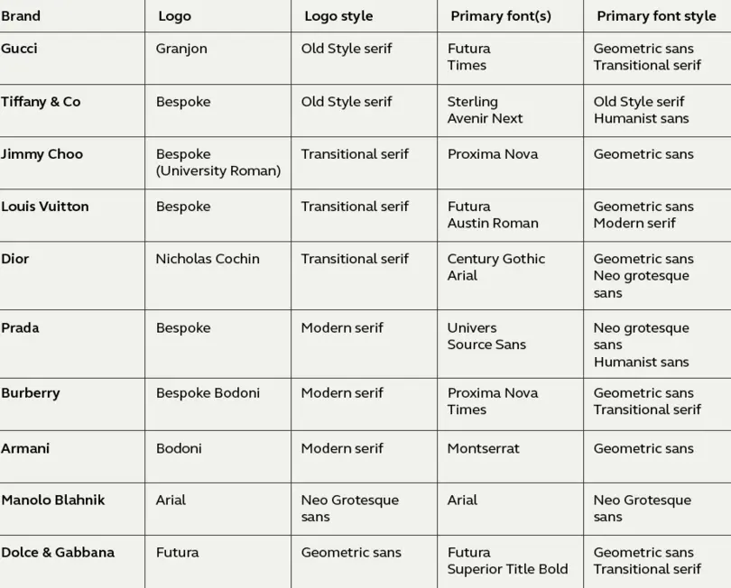 Nach unserer Untersuchung der Verwendung von Fonts in der Beauty- und Automobilbranche sehen wir uns in Teil 3 zehn Luxusmodemarken an. Welches ist der modernste Fontstil? Wie nutzen diese Marken Schriftarten, um sich von ihren Mitbewerbern abzuheben, und gibt es verpasste Chancen?