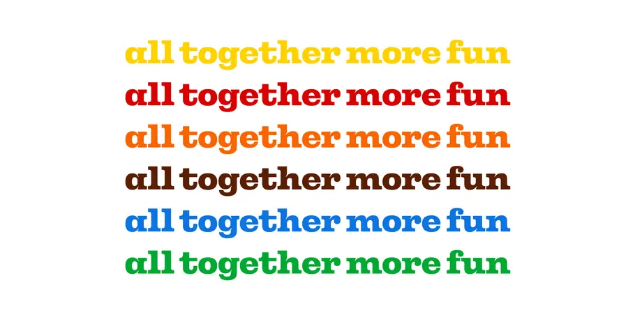 Flexibility was another essential element. All Together would be used in everything from packaging to video to digital text; that led to the decision to use variable font software, which incorporates a huge range of width, weight, and style variation within a single font file. All Together Sans and All Together Serif represent a huge design spectrum capable of crisp type for small, dense packaging text and charismatic headlines and animations.