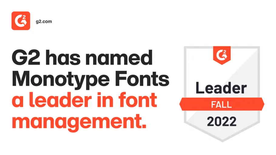 For the second quarter in a row, Monotype Fonts has been awarded the G2 badge for Leader in Font Management. Customers have attested to the quality they have experienced in the Fall 2022 G2 Grid Report and ranked the subscription #1 in the following categories: Likelihood to Recommend, Font Sync, and Categorization.