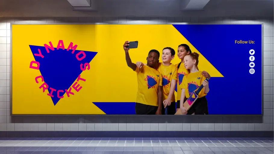 ダイナモス・クリケットは、8〜11歳の子供たちを対象としたジュニア参加プログラムで、彼らはオールスターズ・クリケット・プログラムを卒業するか、クリケットのスポーツ界に初めて入る子供たちです。このブランドは、クリケットのゲームを新世代のプレーヤーたちに活気づけ、自信に満ちた都市の態度をもたらすアイデアから構築されています。私たちは、ダイナモス・ブランドのために新しいタイプフェイスを作成し、「ダイナモス・ディスプレイ」と名付けました。この特定のECBハンドレッドフォントのバリエーションは、若い読者の可読性と理解を助けるために、フルの小文字を備えて作成されましたが、依然としてコアブランドとの関連性を保っています。
