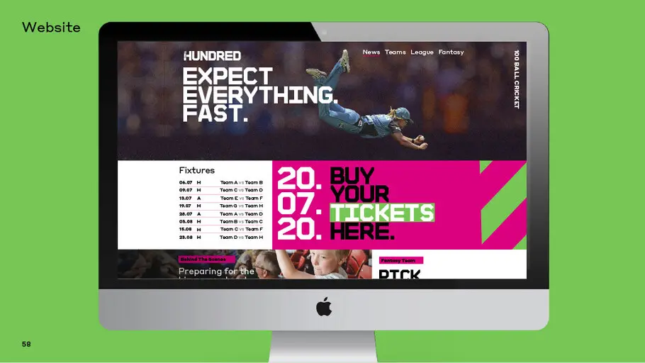 2018年初頭、FutureBrand Londonの小さな専門チームが、ブランドアイデンティティの名前とデザインコンセプトを作成するために動き始めました。競技の鮮やかなカラーパレットとグラフィックパターンに対応するような、強力なタイポグラフィックアプローチが必要であることが明らかになりました。フォントは重要な役割を果たし、革新的なクリケットの核のアイデアとブランドの価値観を伝える必要がありました。