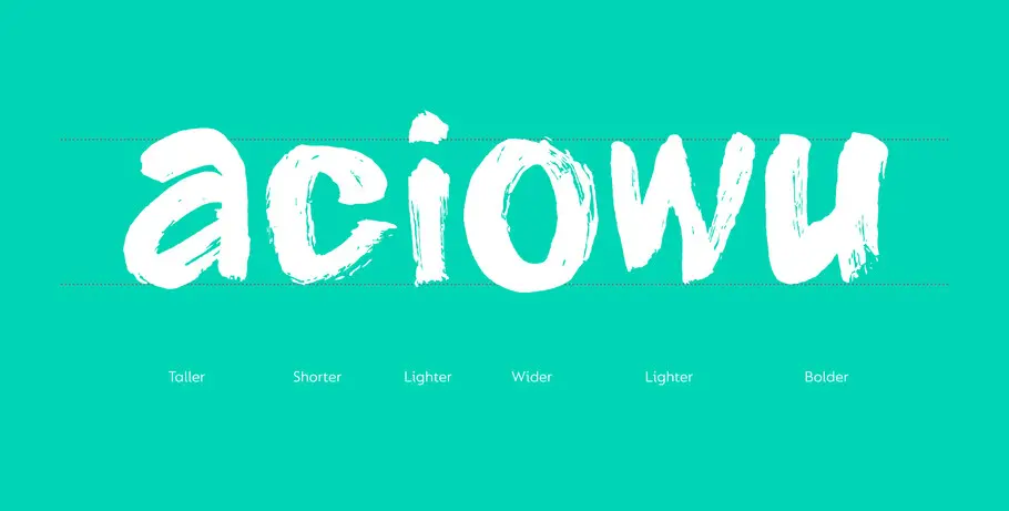Two sets of both upper and lowercase letters have been included in the final font. This gives the typesetter greater control; they’re able to choose specific shapes that better suit certain situations. We have also programmed the font to make use of a randomisation feature. This avoids repeating the same character consecutively.