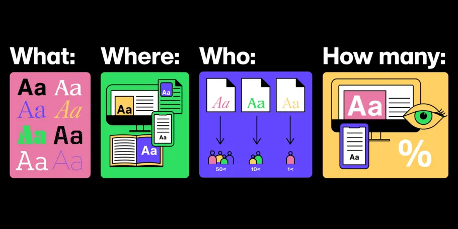 - Wo: das Ausgabemedium, in dem die Schrift zum Einsatz kommt – Website, Druck, digitale Anzeige etc.
