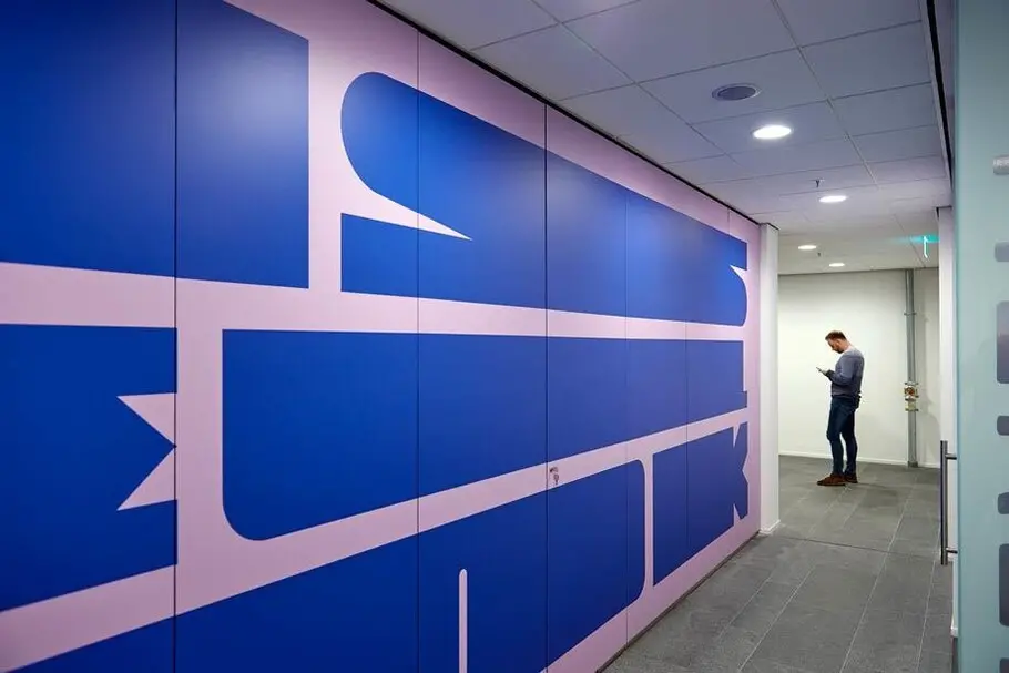 There was a clear vision that the logo’s type could be pushed beyond a static logotype, it could adapt to interior and print applications; becoming a system for wayfinding cues throughout the building. The previously derelict Rivierstaete building had been completely renovated to create an innovative workplace for 1,500 WPP agency staff in the city. VBAT developed a flexible and adaptive identity for the new campus which they renamed Amsteldok.